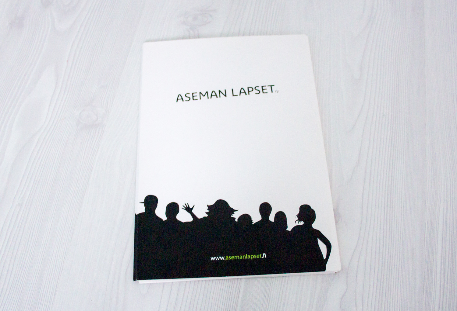 Aseman Lapset ry:n henkilöstön käyntikorttien ja kartonkikansion suunnittelu. Käyntikorttien kartonkimateriaaliksi valittiin orgaaninen Keaykolour 100% Recycled Particles Sunshine.