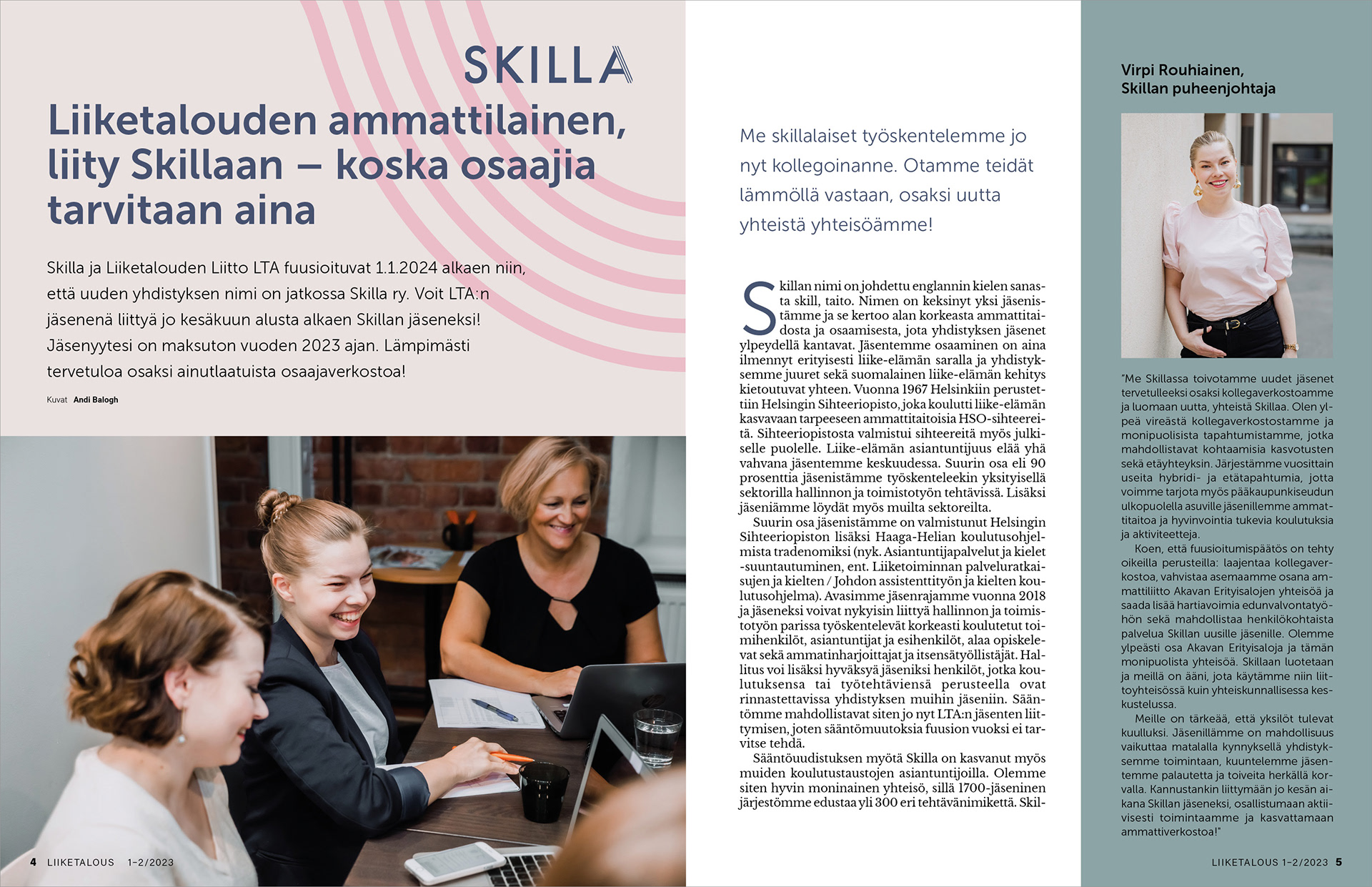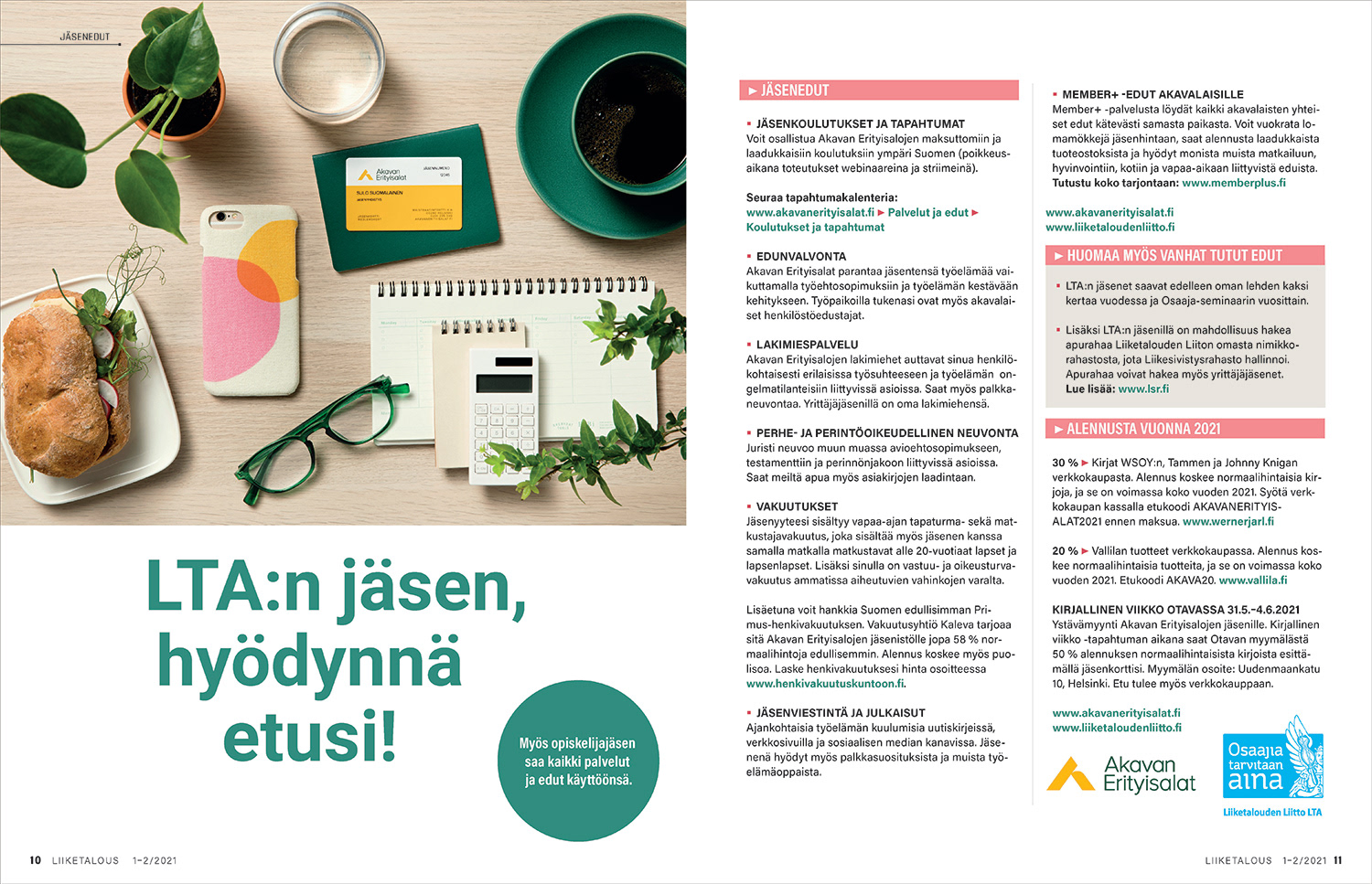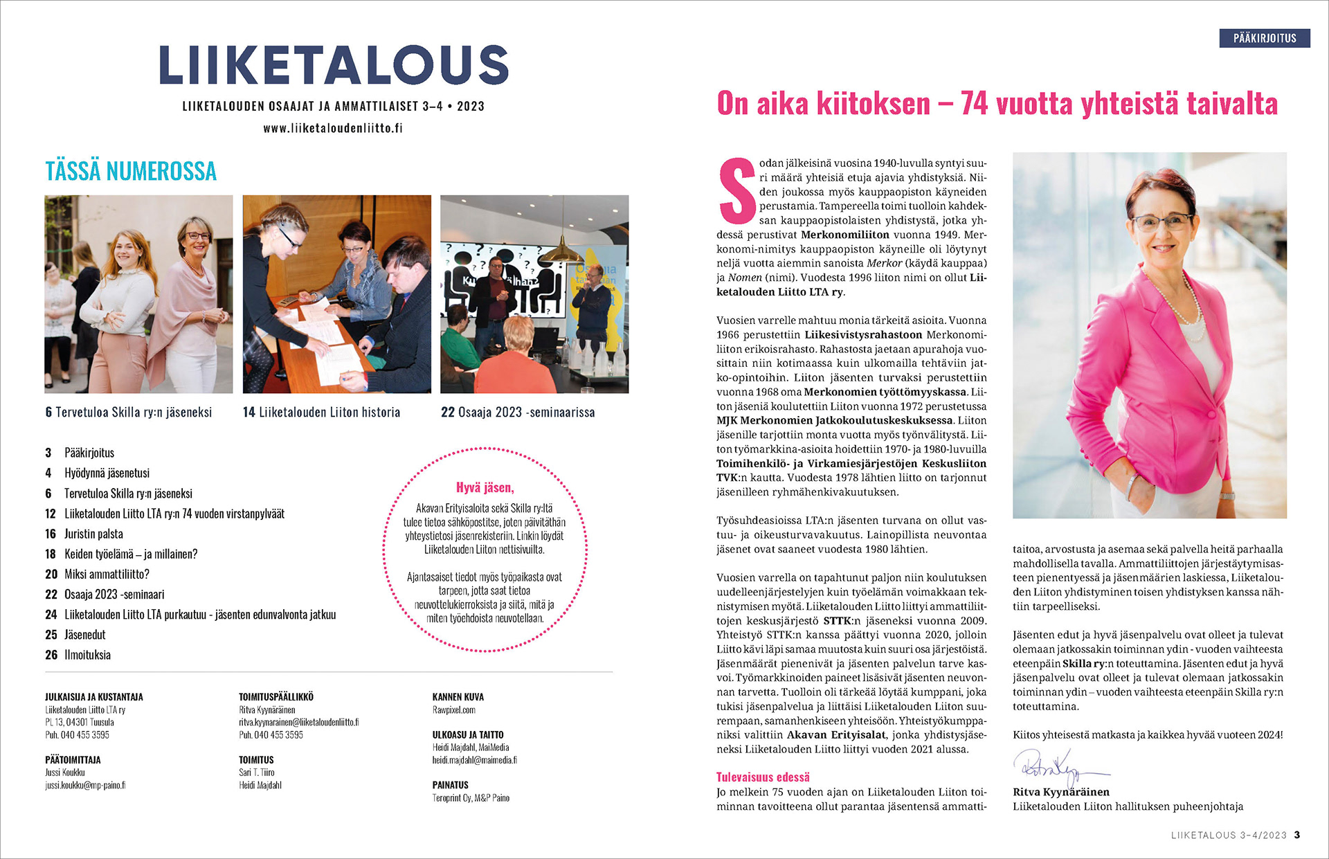 Liiketalouden Liitto LTA ry:n julkaisun ulkoasun uudistus ja lehden taitto.