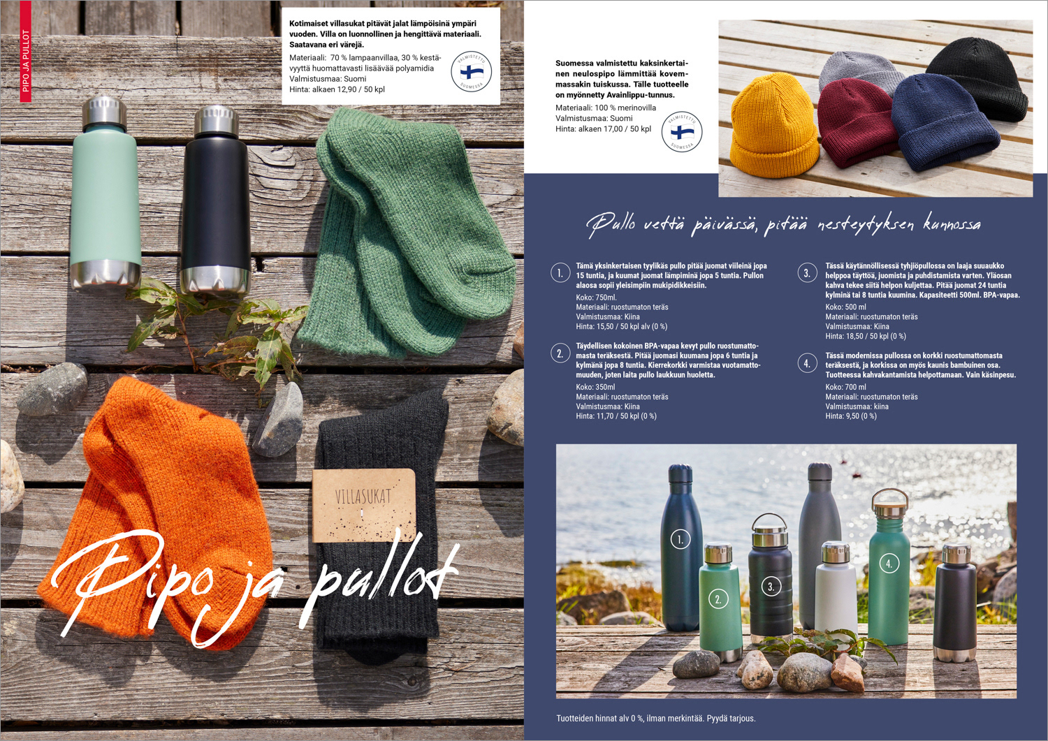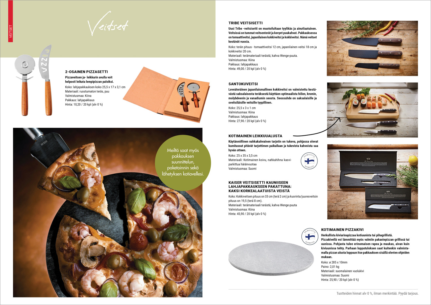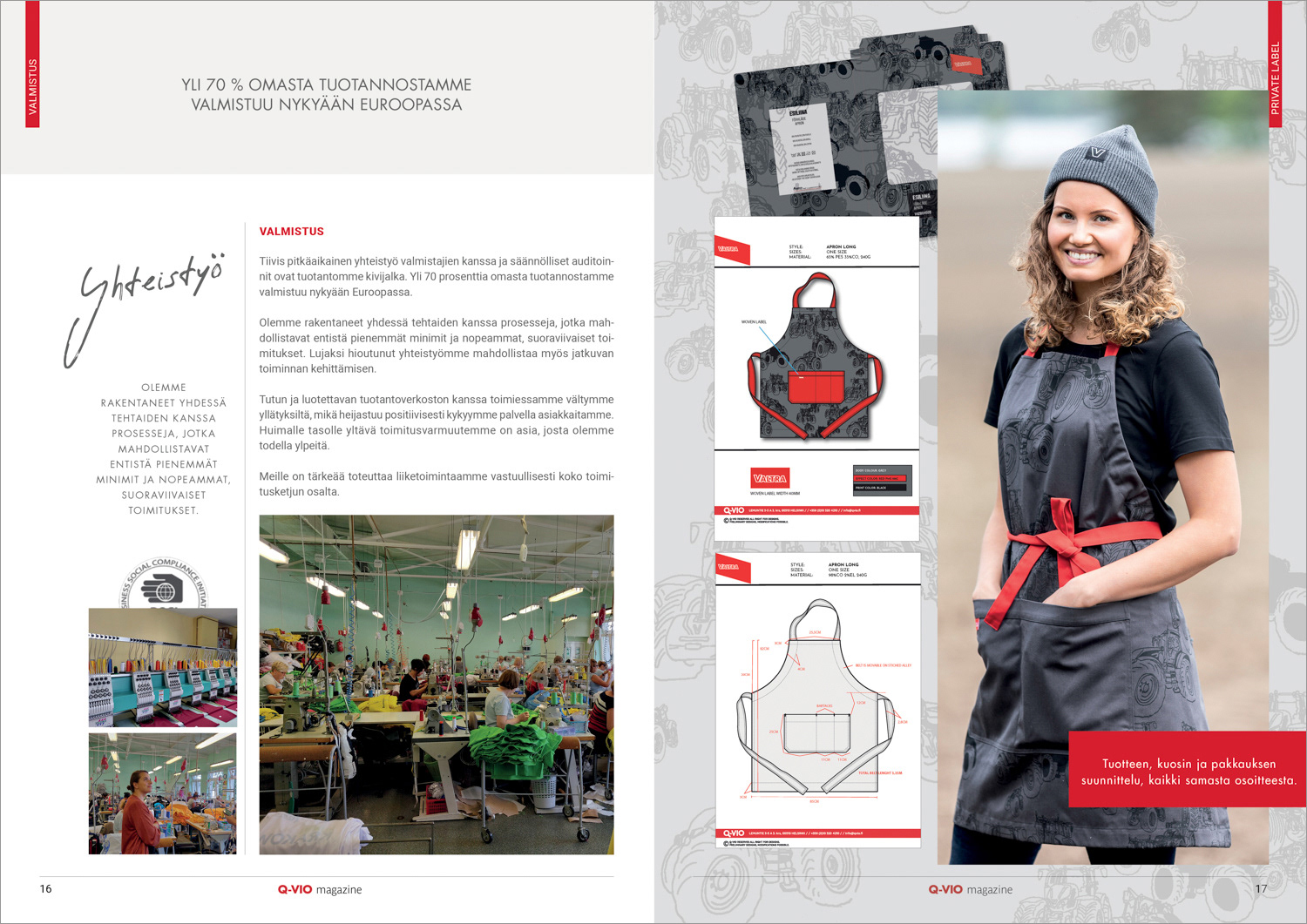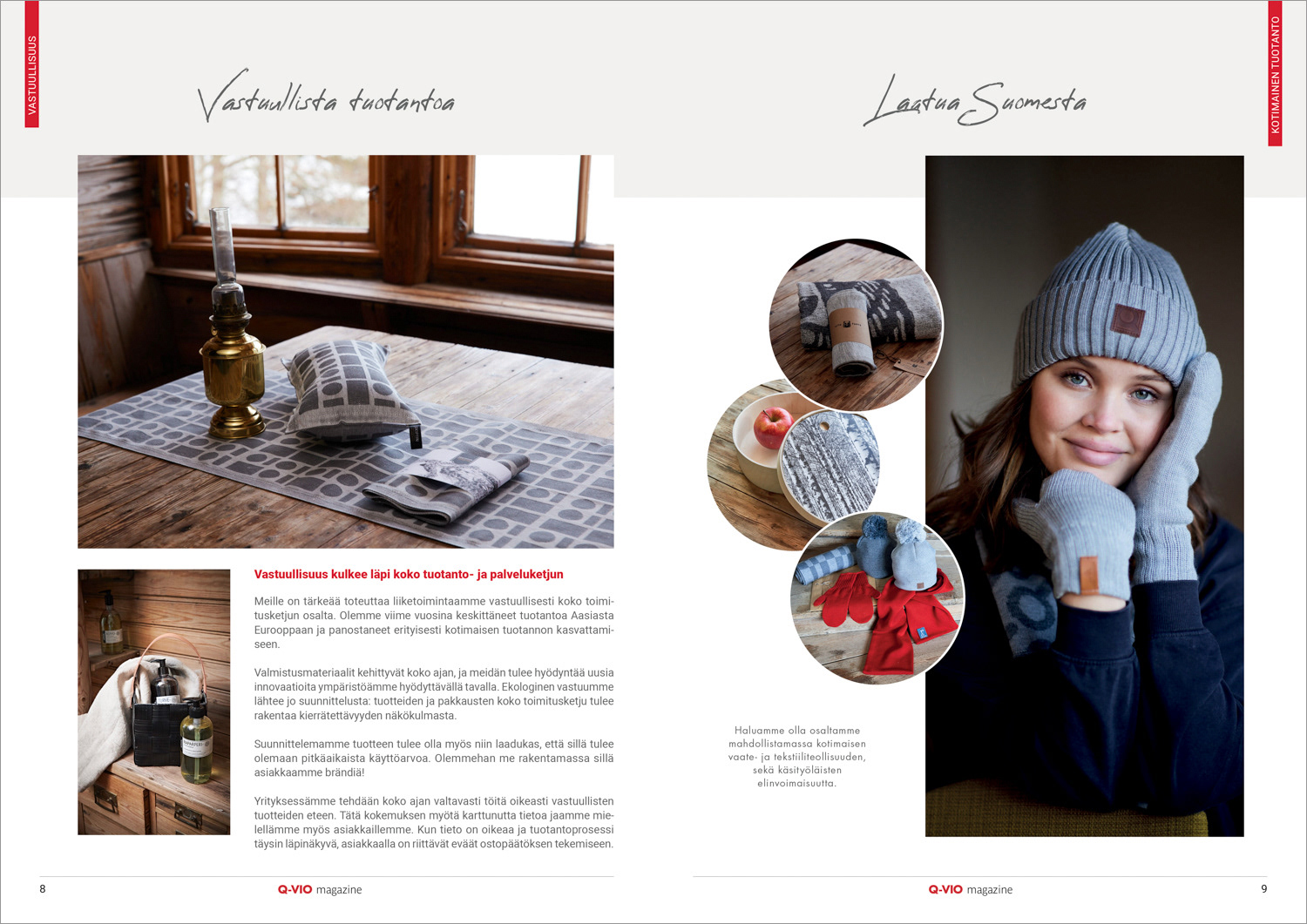 Laadukkaita brändituotteita ja pakkauksia suunnittelevan ja tuottavan Q-vion tuotekuvastojen ulkoasun suunnittelu ja taitto.